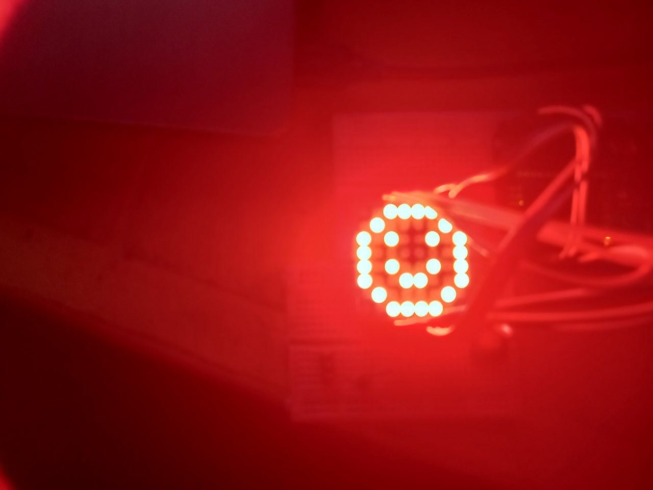 The Arduino controls the LED matrix through row and column multiplexing, where each LED is addressed by activating a specific row and column combination. Predefined binary patterns stored in the Arduino program represent the happy and sad facial expressions. When the push button is pressed, the Arduino switches between the two display patterns, allowing the matrix to alternate between a smiling face and a sad face.