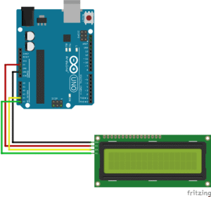 The LCD module is combined with an I²C converter module which allows it to be controlled using two lines SCK (clock) and SDA (data) and simple commands. Without the module, the LCD would have to be controlled using 8-12 pins depending on the configuration. Read more about I²C here