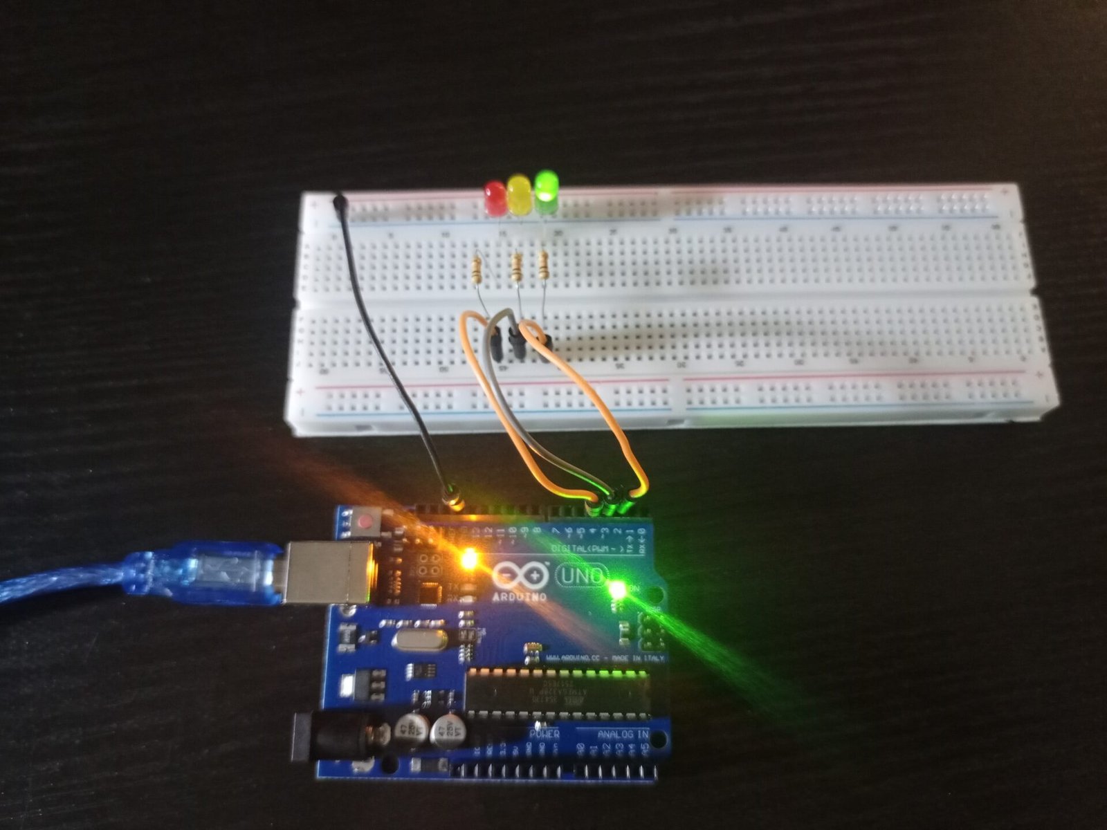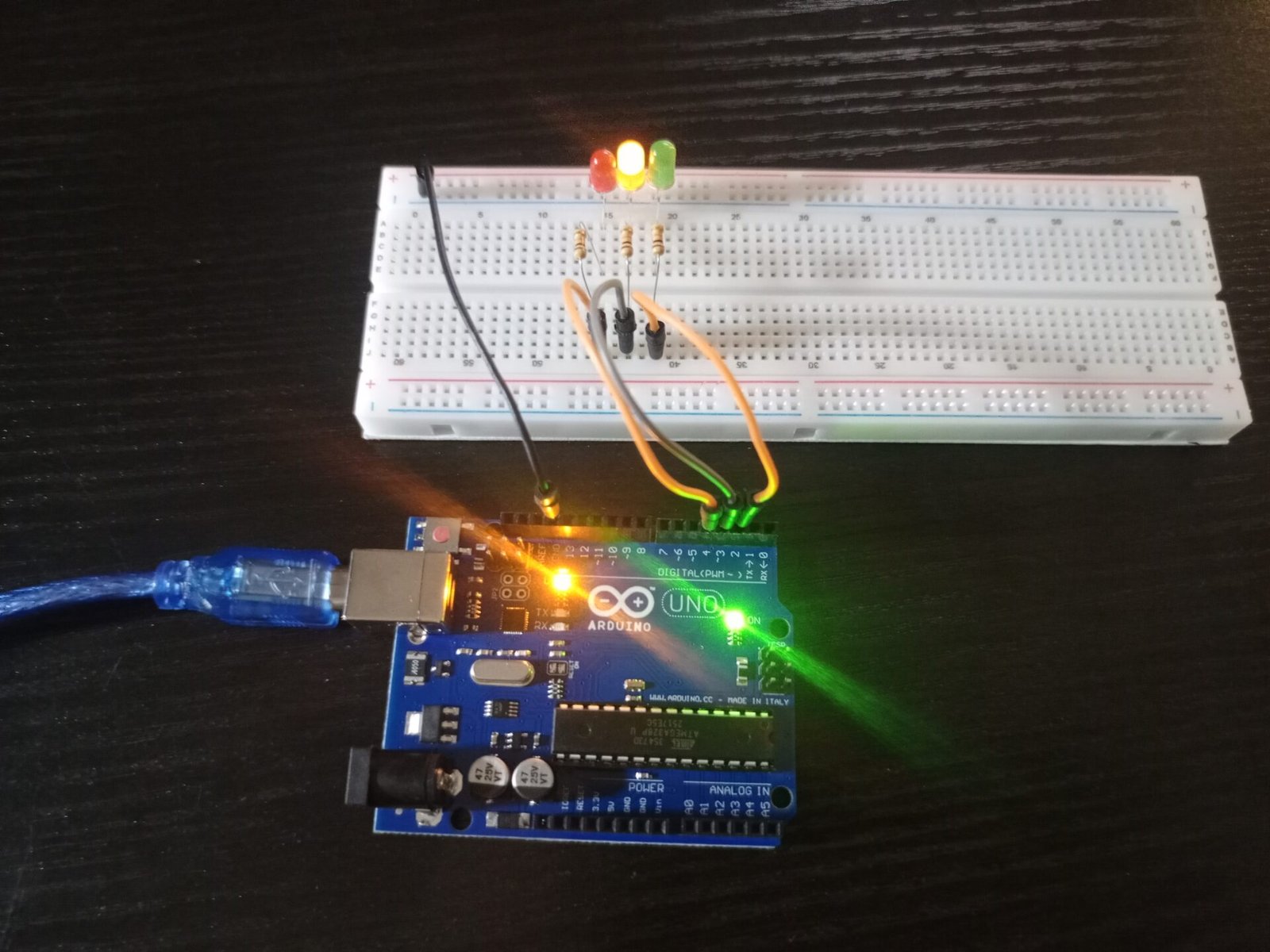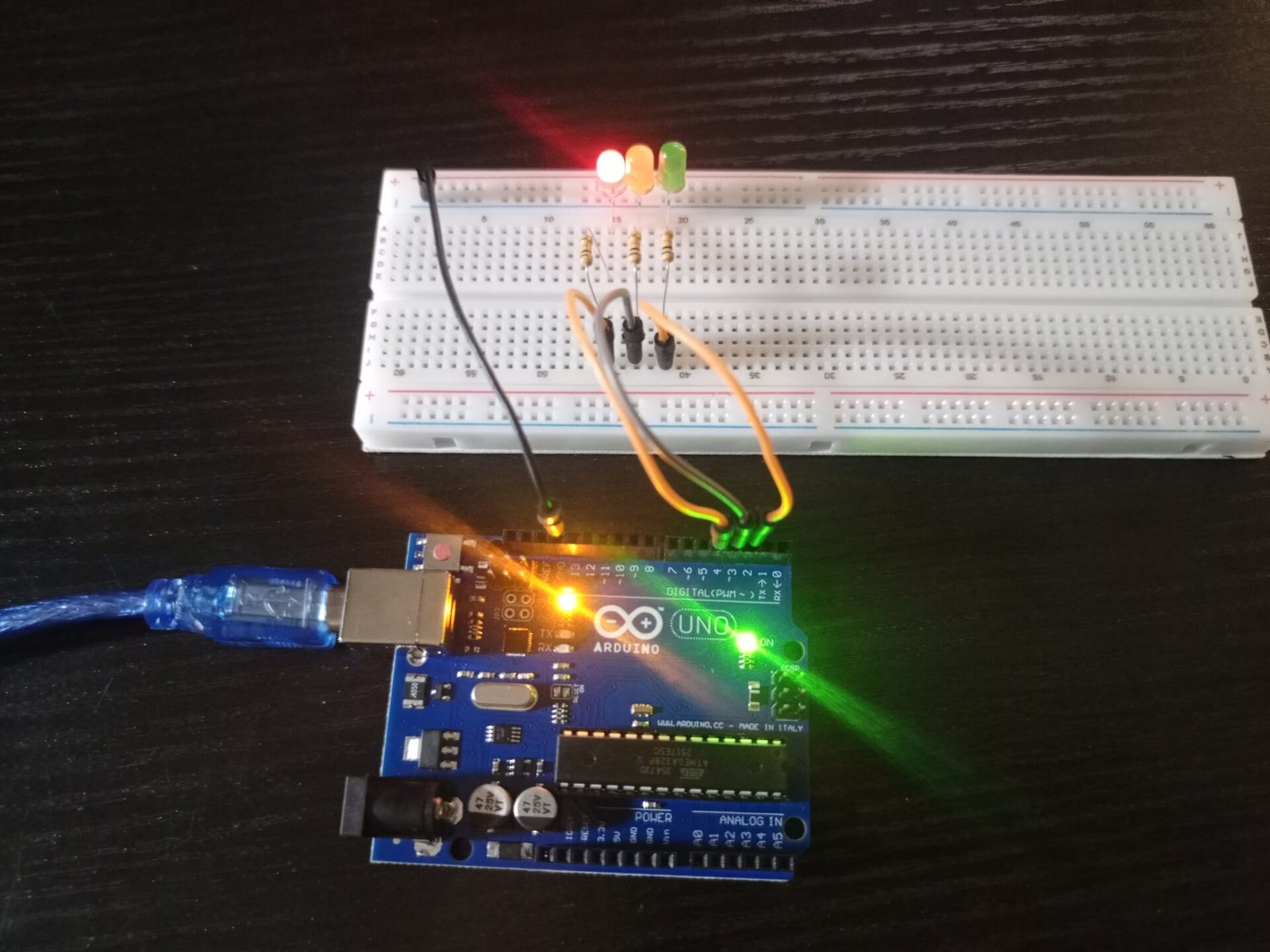 - A traffic light system where the LEDs light up in a programmed sequence.