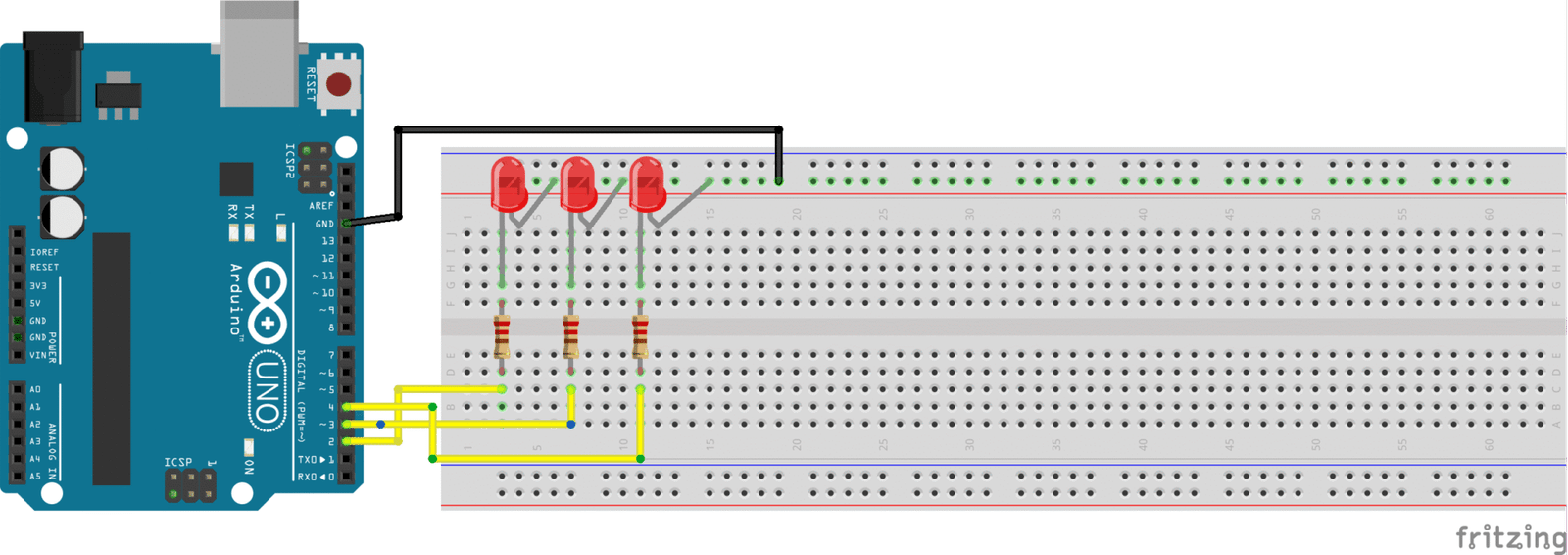 Three LED Wave - Arduino Uno