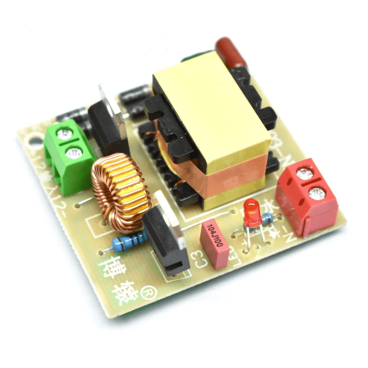 The 12V to 220V High-Frequency Inverter Module (40W) is a compact DC-to-AC power conversion board designed for low-power household and DIY applications. It converts 8V–13V DC battery input into 220V AC high-frequency output, making it suitable for powering small AC loads such as LED bulbs, chargers, and energy-saving lamps.
